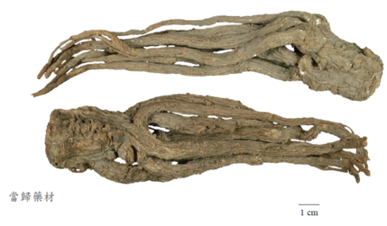 本品為繖形科Umbelliferae植物當歸Angelica sinensis (Oliv.) Diels之乾燥根。